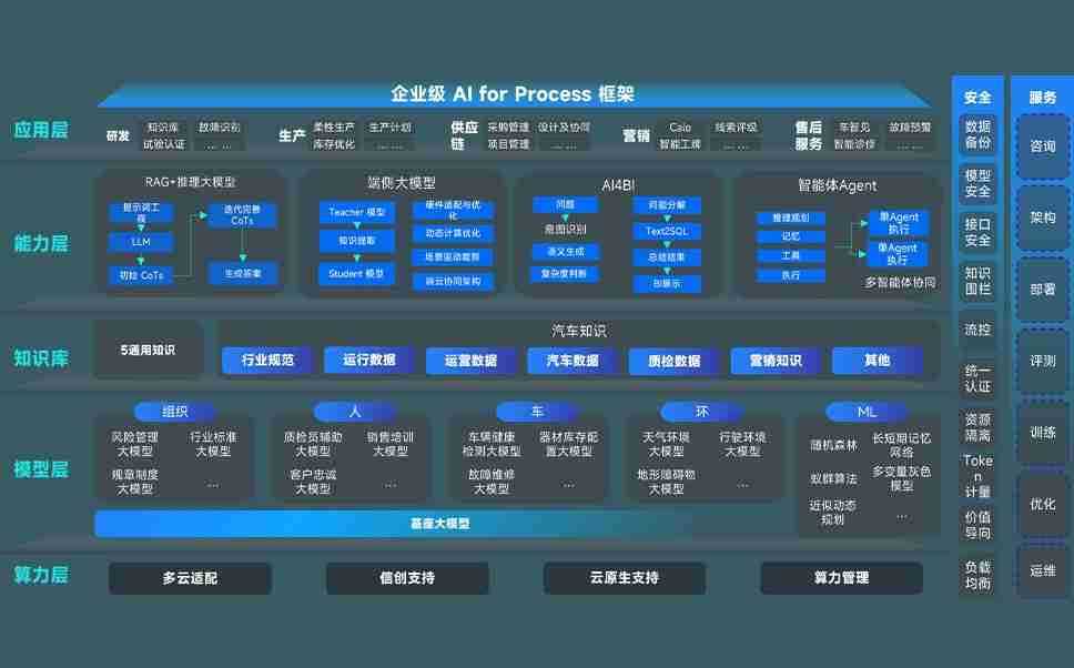 15VIP太阳集团问学智车解决方案是一套基于AI技术的汽车行业智能化系统,,,覆盖从底层算力到顶层AI应用的全栈方案。。。方案由算力层、、模型层和应用层组成:算力层,,方案支持多种一体机配置,,,,具备云端灵活部署、、、、多云适配以及动态优化计算资源的能力;模型层,,,15VIP太阳集团问学平台版提供了企业级AI应用一站式构建与管理平台,,支持基于后训练强化技术的汽车企业专属模型的训练、、评测和运营;应用层,,,,15VIP太阳集团问学DeepSeek版提供包括超级员工、、、智能招采、、、智能营销、、、智能客服、、AI for BI等一系列解决方案,,可助力汽车行业实现数字化转型,,,,让管理更智能、、响应更敏捷。。。